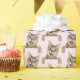grinsende graue und braune Tabbattacke auf rosa Hintergrund. Die Hintergrundfarbe kann geändert werden.