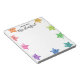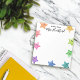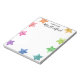 White A note from School Teacher notepad personalisiert mit dem Namen des Lehrers in einem hübschen schwarzen Skript. Das Notizblock des personalisierten Lehrers zeigt lächelnde Sterne in allen Farben des Regenbogens, der von den Rändern des Notizbuches herausguckt.