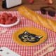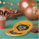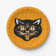 Lächelnde schwarze und orangefarbene Halloween-Kat Pappteller