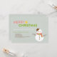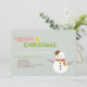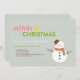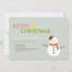 Diese schöne Einladung hat einen lächelnden Schneemann vor einem schönen blauen Hintergrund mit Schnee und der Text - Frohe Weihnachten , in rot und grün geschrieben.