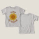 Dieser personalisierte T - Shirt für Kleinkinder ist mit einer fröhlichen Sonnenblume mit einem kühnen, lächelnden Gesicht und lebhaften gelben Blütenblättern ausgestattet und strahlt Wärme und Freude mit dem Text "My Sunshine" aus.
