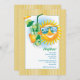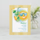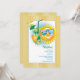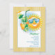 Eine perfekte Sommereinladung für ein mojito Party oder irgendeine Feier in der Sonne. Die Rückplatte hat dünne gelbe Streifen und die lächelnde Sonne trägt Sonnenbrille und Toast mit einem mojito Cocktail. Die Karte ist einfach, mit Ihrer Benennung, Schriftart, Schriftartfarbe und Wahl von sechs Papiersorten besonders anzufertigen.