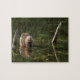 Foto eines Bibers in einem grünen Teich lächelnd und seine großen vorderen Zähne zeigend. Lächelt und das ganze Weltlächeln mit Ihnen!