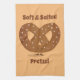 Küchen-Tuch mit einem lächelnden Brezel-Cartooncharakter und der Wort- "weich und gesalzenen Brezel".