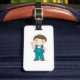Reisen Sie stilvoll mit diesen Gepäckanhängern, die eine fröhliche Cartoon School Junge Illustration zeigen. Das lächelnde Kind in den Overalls mit einem Rucksack verleiht dem Gepäck ein angenehmes und freundliches Aussehen, sodass es sich auf Flughäfen oder auf Reisen leicht zu sehen macht. Diese Anhänger sind haltbar und anpassbar und vereinen Praxisnähe mit spielerischem Charme. Diese Gepäckanhänger sind ein tolles Geschenk für Kinder, die ins Camp gehen, Studierende oder alle, die leichte Designs mögen. Sie behielt Ihre Sachen sicher und stehend mit Persönlichkeit.