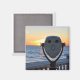 Ein lächelnder Münzsucher (oder Ferngläser) mit dem Hintergrund des Sonnenuntergangs am Golf von Mexiko. Dieser Magnet macht ein schönes kleine Geschenk oder eine Zugabe zu einer kleinen Geschenktasche.