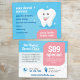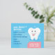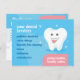Ein lächelnder Zahn und ein glückliches Postkartendesign ideal für Zahnärzte, Zahnkliniken und Kieferorthopäden, die sich um Kinder und Familien kümmern.