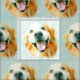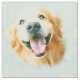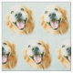 Dieses Gewebe kennzeichnet ein mit Ziegeln gedecktes Aquarellporträt eines lächelnden golden retrieverhundes, auf einem blauen Hintergrund.