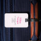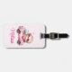 Ein Gepäckanhänger mit einer skurrilen Abbildung. Ein rosa Faultier, das in einem rosa Cabrio herumfährt. Schön.