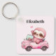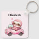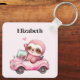 Lächelndes rosa Faultier, das ein Cabrio antreibt Schlüsselanhänger