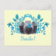 Lächle! Kamera mit blauen Blätter und Schmetterlin Postkarte