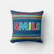 Farbenfrohe Lächeltextanzeige mit Streifen Dekoration auf blauem Hintergrund
