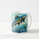 Lachs Jumping Mosaic Floral Blue Green Peach Kaffeetasse