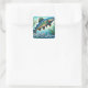 Lachs Jumping Mosaic Floral Blue Green Peach Quadratischer Aufkleber