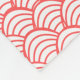 Dieses mittelgroße Vlies hat ein Art-Déco-Design von lachsgebogenen Linien in einer dreieckigen Form auf einem Feld von Weiß, das sich über das Design wiederholt.