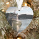 Ein umgewandelter Schlepper wird in LaConner, Washington an einem Tag angekoppelt, als das Sonnenlicht und das Wasser mit einem speziellen Licht nach einem Frühlingsregensturm glüht.