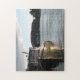 Ein umgewandelter Schlepper wird in LaConner, Washington an einem Tag angekoppelt, als das Sonnenlicht und das Wasser mit einem speziellen Licht nach einem Frühlingsregensturm glüht.