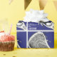 Lacrosse Geschenkpackung mit laxem Stick-Design und Happy-Geburtstag Linie auf blauem Hintergrund. Bearbeiten Sie Text, um den Namen des Spieler-, Trainer- oder Mannschaftssportfans hinzuzufügen.