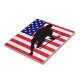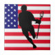 Lacrosse-Flagge IRock Amerika mit einem treibenden Lacrossespieler über der amerikanischen Flagge. Flagge