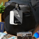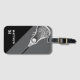 Lacrosse Beuteltasche mit laxem Stick auf grauem und schwarzem Hintergrund. So personalisieren Sie Text für Spieler oder Teamcoach.