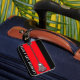 Creative Lacrosse Beuteltasche mit laxer Strichkunst und lustigem Zitat auf rotem Hintergrund.