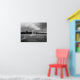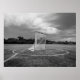 A dramatic black and white photograph of a lacrosse goal and net on an open field under moody storm clouds. The monochromatic treatment gives this sports image a timeless, artistic feel perfect for a teen bedroom, modern game room, or lacrosse player's hangout space. The frame shown in the cover photo is for styling only and is not included.