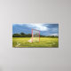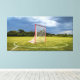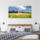 Bring the energy of game day indoors with this vivid lacrosse goal canvas print capturing a red goal and net on a lush green field under dramatic storm clouds. A striking piece of sports photography perfect for a lacrosse player's bedroom, teen hangout space, or game room. The panoramic landscape format makes a bold statement on any wide wall.