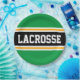 Dieses sportliche, sportliche Design zeichnet sich durch feinen LACROSSE-Text in einem farbig hervorgehobenen breiten schwarzen Streifen mit doppelweißen und gelben Rennstreifen und leuchtend grünen Streifen aus. Der Text in diesem Design kann personalisiert sein.