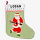Kreativer Lacrosse Weihnachtsfest Strumpf mit Santa Laxe Spieler. Fügen Sie Namen hinzu, um einen personalisierten Keepake zu erstellen.