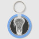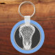 Einzigartiger Lacrosse-Schlüsselanhänger mit laxer Stick-Abbildung auf hellblauem Hintergrund.