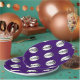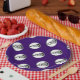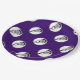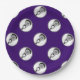 Lacrosse Party- oder Teamereignis-Teller mit laxen Designmustern auf lila Hintergrund.