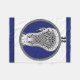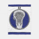 Lacrosse Spieler halten Geschenktüte mit lachsfarbenem Stick Design auf blauem Hintergrund. Bearbeiten Sie Text, um die Nummer oder den Namen des Spielers hinzuzufügen.