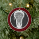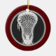Lacrosse-Ornament mit laxer Stick-Abbildung auf einem Maronhintergrund. So personalisieren Sie Text bearbeiten, um den Namen des Spielers oder Coaches und das Jahr hinzuzufügen.