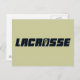 Lacrosse. Zeige deinen Stolz darauf, ein Spieler und/oder Fan des schnellsten Sports zu sein. Fettformatiges Textdesign des Wortes Lacrosse mit Silhouette des Stabkopfes im Inneren des O.