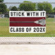 Creative Lacrosse Team Senior Night Abschluss Banner mit laxem Stick und motivierend Zitat auf Maron Hintergrund. Text bearbeiten, um Jahr hinzuzufügen.