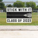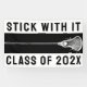 Creative Lacrosse Team Senior Nacht oder Graduiertenparty Banner mit laxem Stick und motivierend Zitat auf schwarzem Hintergrund. Text bearbeiten, um Jahr hinzuzufügen.