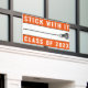 Lacrosse Teambanner mit motivierend Linien- und Lacrosse-Stick-Gestaltung auf orangefarbenem Hintergrund. Text bearbeiten, um Jahr hinzuzufügen.