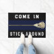 Lacrosse Doormat für Laxspieler, Trainer und Teamsportfans, mit Lacrosse Stick Design und lustiger Linie.