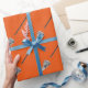 Einzigartige Lacrosse-Geschenkverpackung oder Team-Party-Dekoration mit laxem Stick und Kugelmuster auf einem orangefarbenen Hintergrund für Spieler, Party, Trainer oder Mannschaftssportfans.
