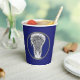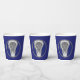 Einzigartige Lacrosse Party oder Game Day Cups mit laxer Strichkunst auf blauem Hintergrund für Teamevents und Seniorennacht.