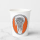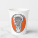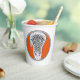 Einzigartiges Lacrosse Design mit laxer Strichkunst auf orangefarbenem Hintergrund für Teamevents und Seniorennacht.