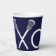 Einzigartiges Lacrosse Party, Senior Night oder Game Day Cups mit laxen Stick Xoxo Art auf marineblau Hintergrund.