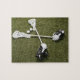 Lacrosse Sticks, Handschuhe und Bälle auf künstlic Puzzle