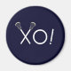 Kreativer Lacrosse Geschenkmagnet für Teamplayer-, Trainer- oder Sportfans mit laxen Stöcken xoxo auf marineblau blauem Hintergrund.