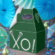 Kreative Lacrosse Party- oder Teamsportveranstaltungsboxen mit lachsfarbenem Design auf grünem Hintergrund.