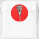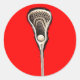 Coole Lacrosse-Geschenksticker, Umschlag Aufkleber oder Team-Gastgeschenke-Labels mit einzigartigem laxen Stick-Design auf rotem Hintergrund für sportliche Party-, Geschenk- oder Teamfeiern.
