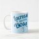 Skriptdesign in blauen Tönen mit dem Text LACROSSE WIE EIN BOSS und einem Lacrosse Stick und Ball Grafik.