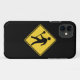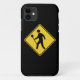 Lacrosseüberfahrt. Stock-tragender Fußgänger des Lacrosse auf klassischem gelbem Überfahrtzeichen. Lacrosse iphone 5 Abdeckung.