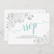Lacy Aqua Calligraphy on White Wedding RSVP Postkarte