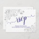 Lacy Calligraphy Navy Blue on White Wedding RSVP Postkarte